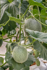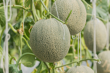 哈密瓜。树上的新鲜瓜果。选择性的焦点