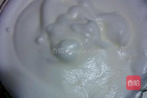 蛋清中分次加入白砂糖,打至硬性发泡状态