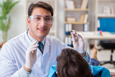 牙医看病一套蓝色的西装,一颗牙。在白色
