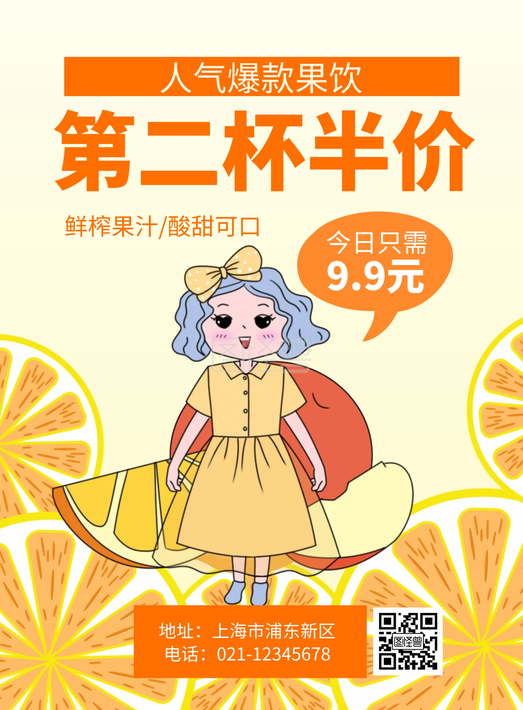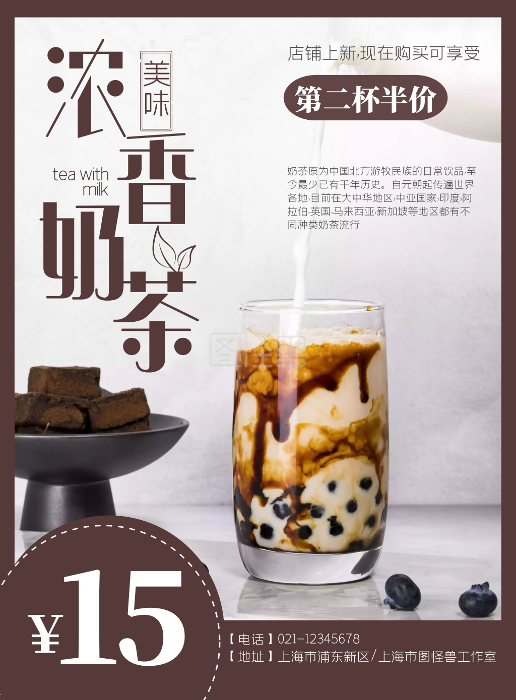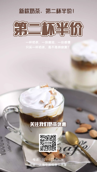 咖灰色时尚风格饮品第二杯半价促销宣传海报