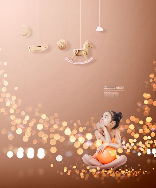 儿童摄影写真金色光斑背景ps模板素材