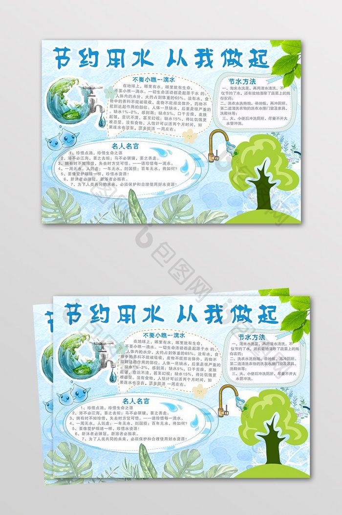 蓝色清新卡通节约用水电子小报】图片下载