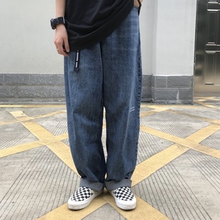废克赛文复古水洗宽松直筒休闲嘻哈牛仔裤