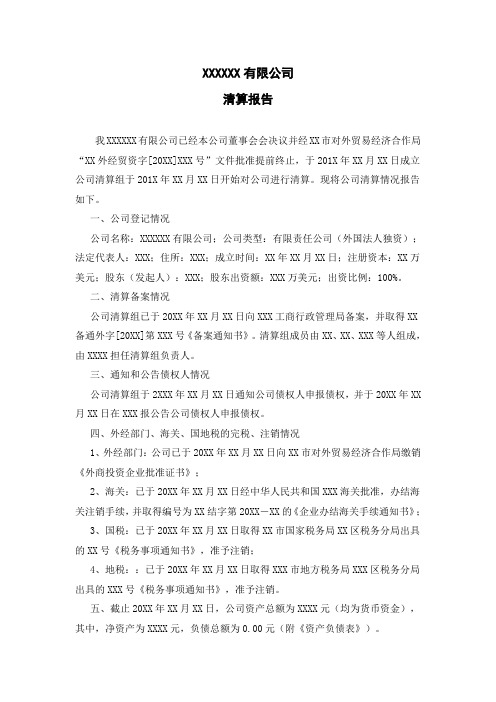 清算报告范本