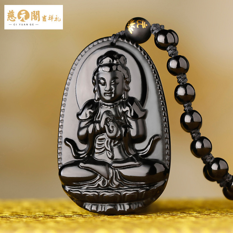 开光正品黑曜石八大守护神阿弥陀佛菩萨