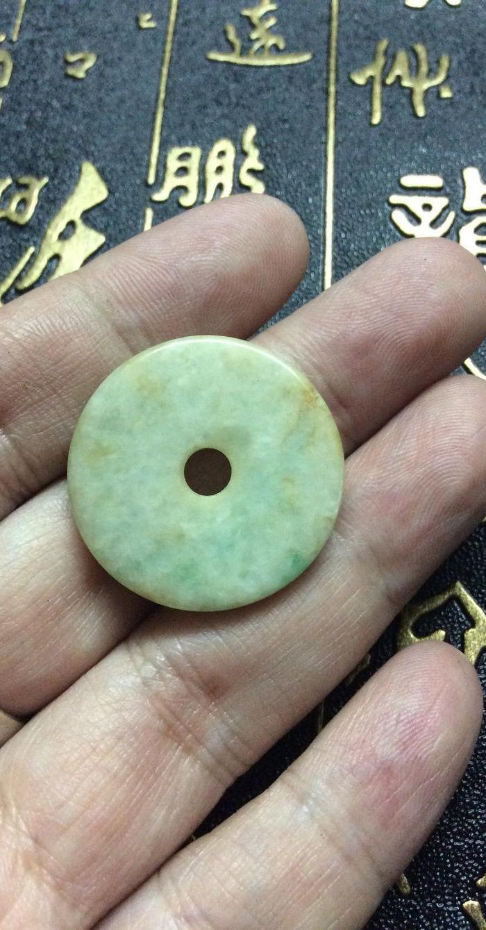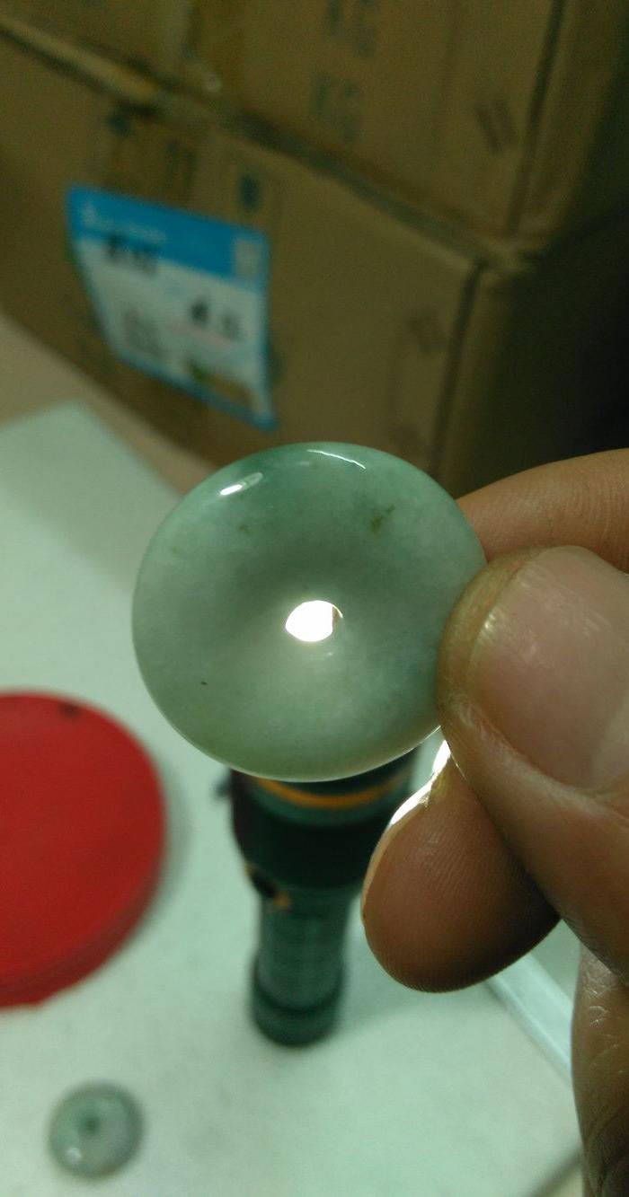 高冰种冰白荧光天然翡翠扳指\/玉扣套装