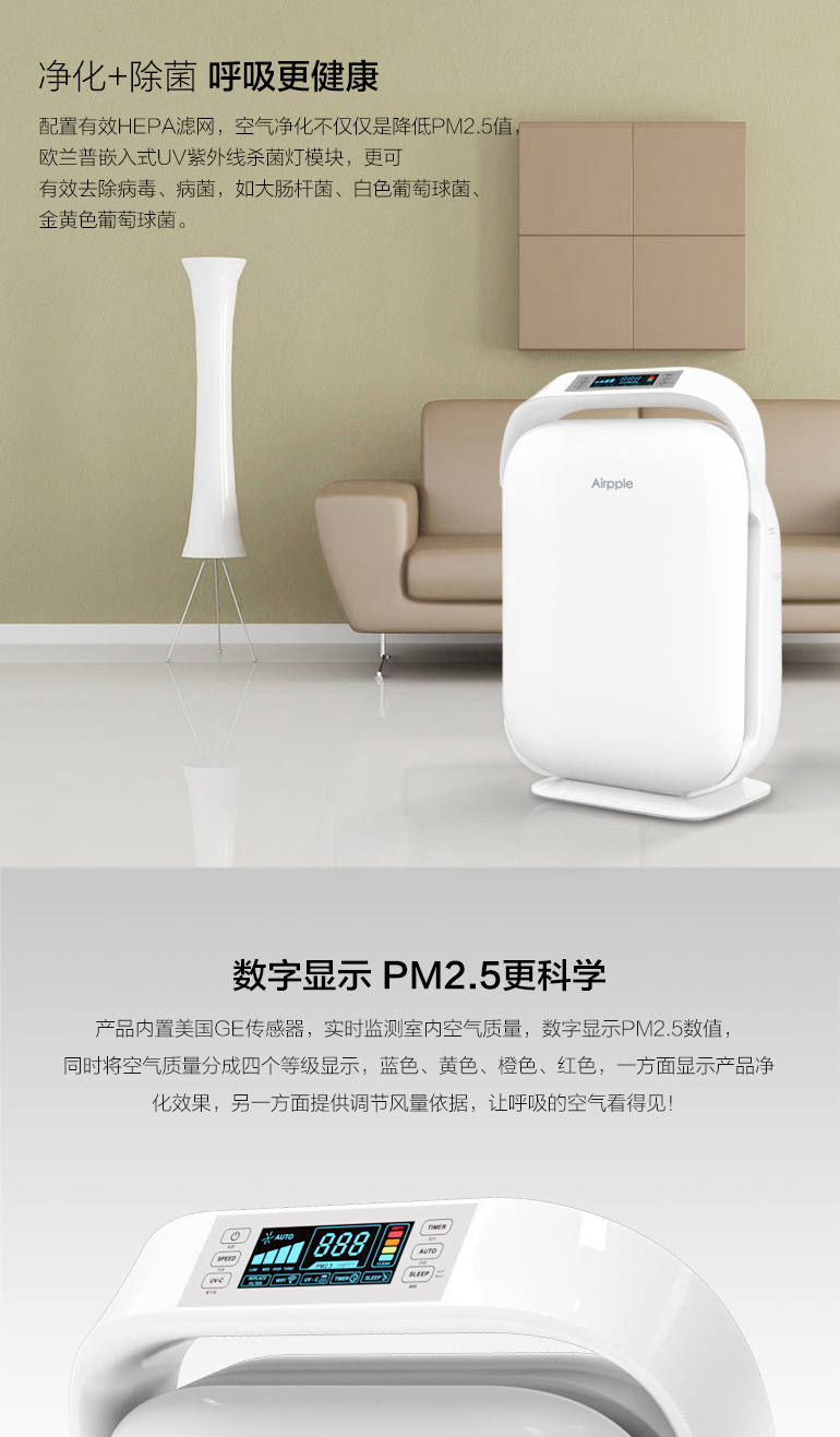 欧兰普airpple 家用空气净化器CF-8600空气