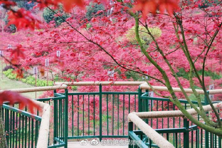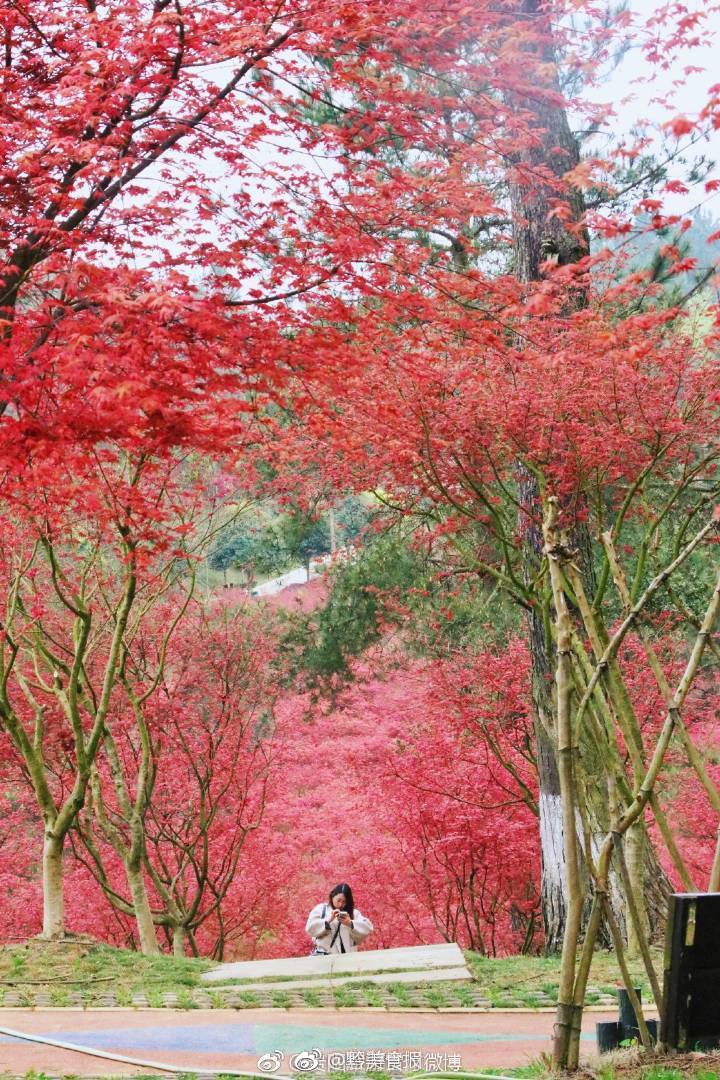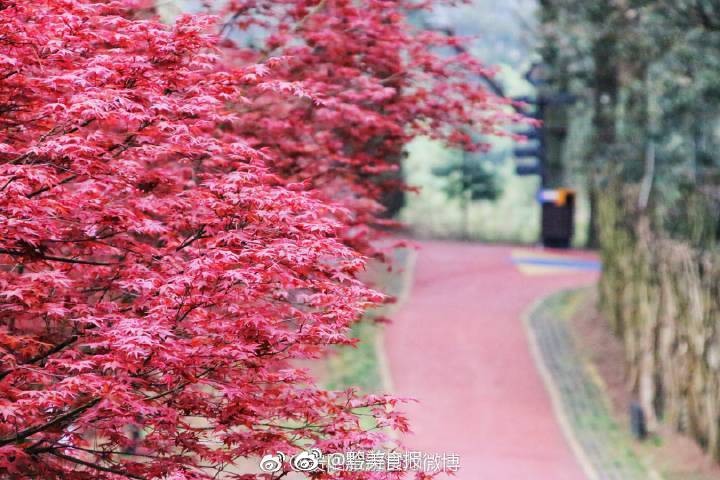 贵阳乌当枫叶谷,火红的枫叶像盛开的花,
