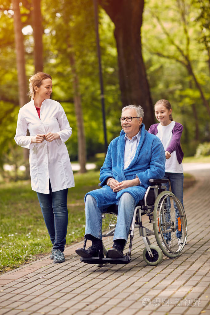 成年_女人_推_老人_轮椅_图片大全-全景创意图库(quanjing