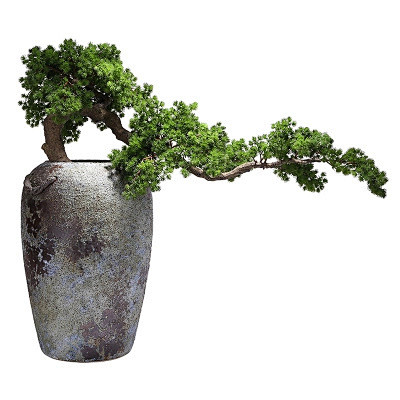 新中式仿真迎客松树盘景绿植复古陶瓷落地花瓶样板间酒店大堂客厅