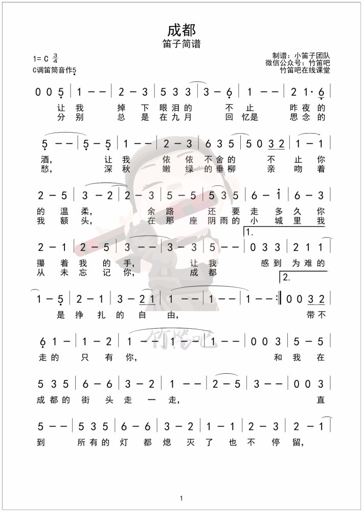 《成都》吉他谱 赵雷 C调版高清弹唱谱