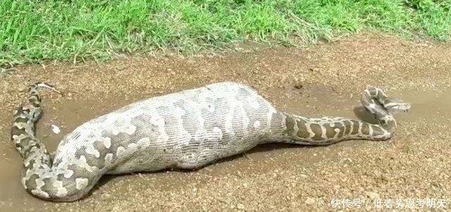 罕见!巨蟒吞下羚羊:没吃完整个吐了出来-