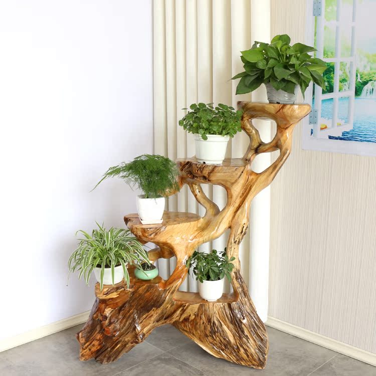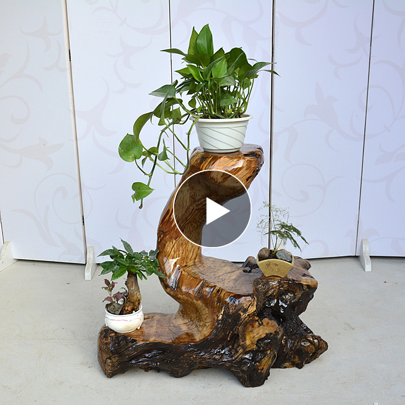 香樟木实木根雕花架客厅阳台转角树根花架盆景架置物架精美摆件