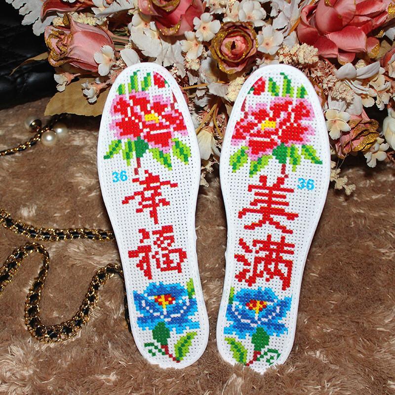 绣花十字绣鞋垫情侣纯棉布针孔男士女士 .