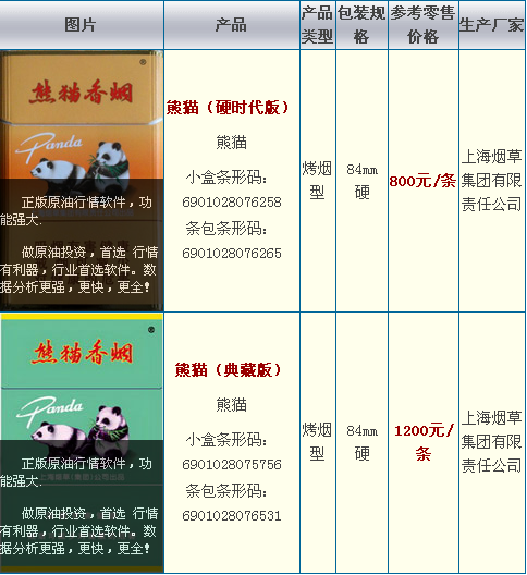 熊猫香烟价格多少钱?2019最新熊猫香烟价格表图查询