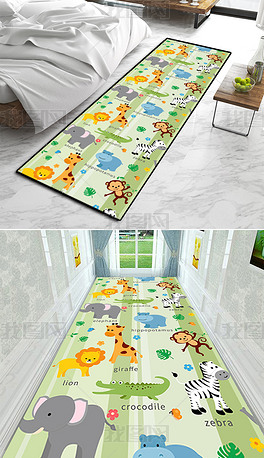 原创卡通动物儿童走廊卷材循环地毯图案设计