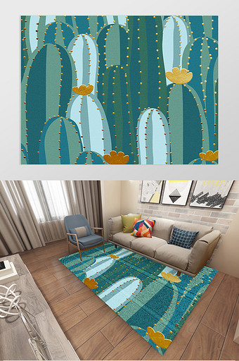 现代简约卡通抽象仙人球质感地毯