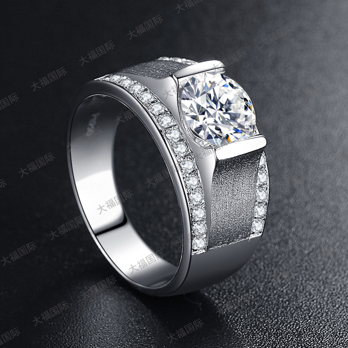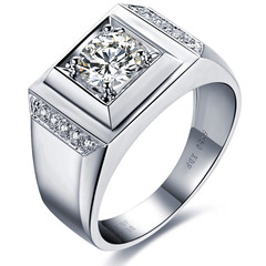 925纯银一1克拉男士仿真钻戒指18K白金结婚大气锆石钻石钻戒_品牌钻石戒指男1克拉_54非主流空间站