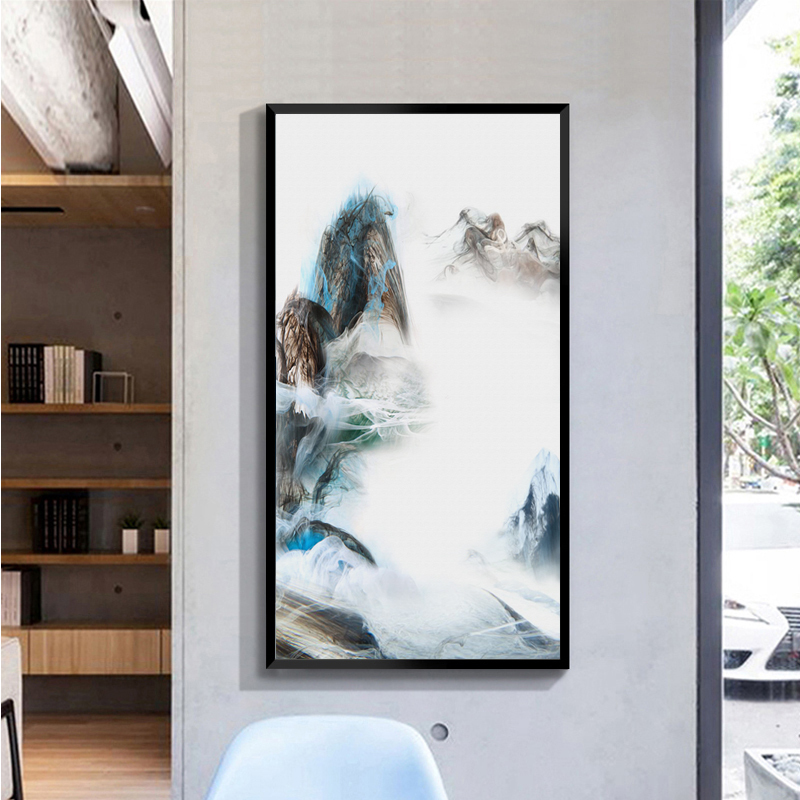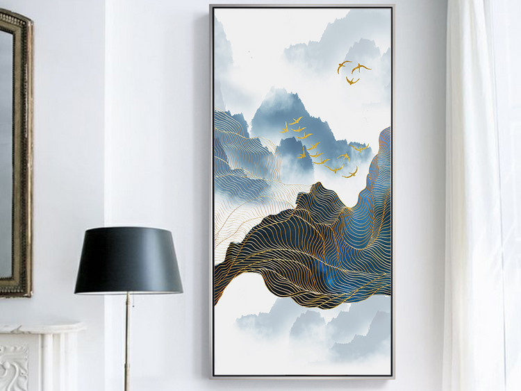 现代新中式装饰画背景墙抽象山水挂画酒店玄关过道画大尺寸竖版画
