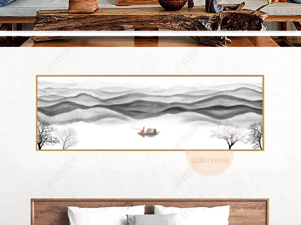 禅意水墨新中式山水客厅装饰画横幅壁画