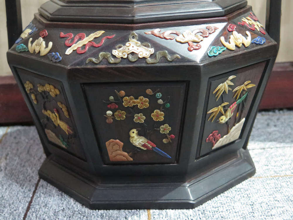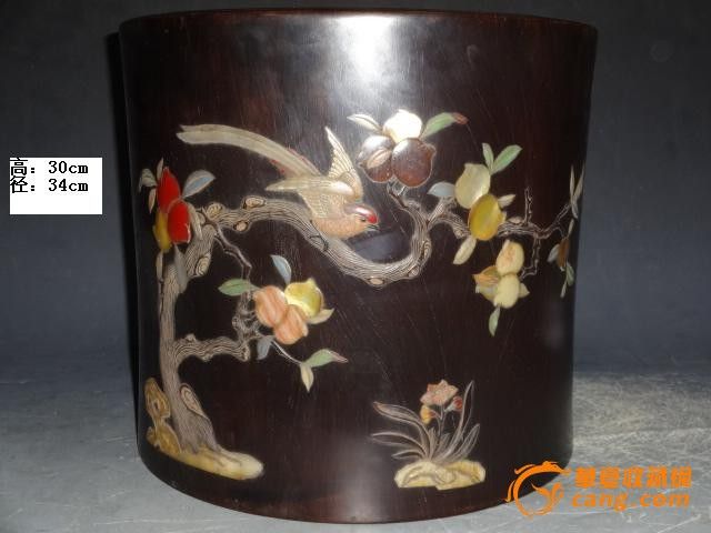小叶紫檀百宝嵌花鸟笔筒_小叶紫檀百宝嵌
