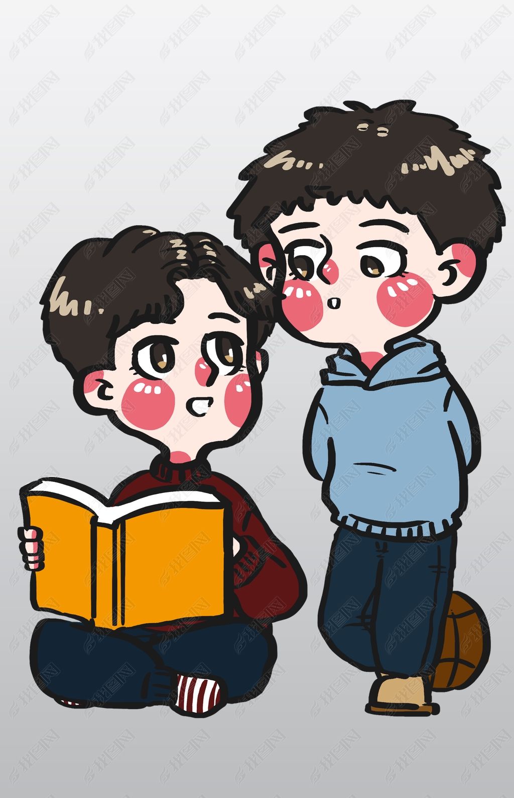 两个小人摸头表情:该出去玩得出去玩-九蛙图片