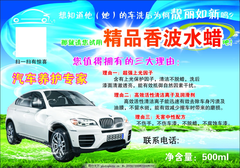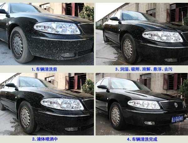简介:水蜡洗车液是先高压水冲车,再把一比一百五的水蜡洗车液用喷壶喷到车漆表面,再用自来水一边冲一边洗,不