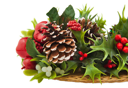冬青树和红色种子为圣诞节装饰品在阳光下