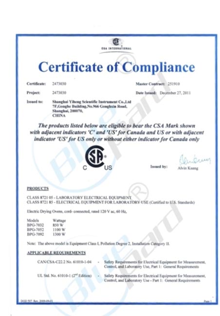 上海一恒获得CSA\/CUS认证