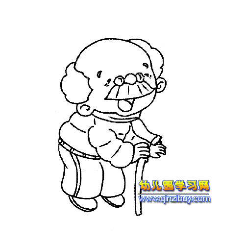 杵拐杖老爷爷的简笔画4-幼儿园教案网
