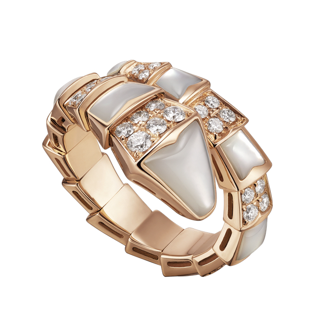 宝格丽宽版白贝间钻小蛇戒- 大牌18K金