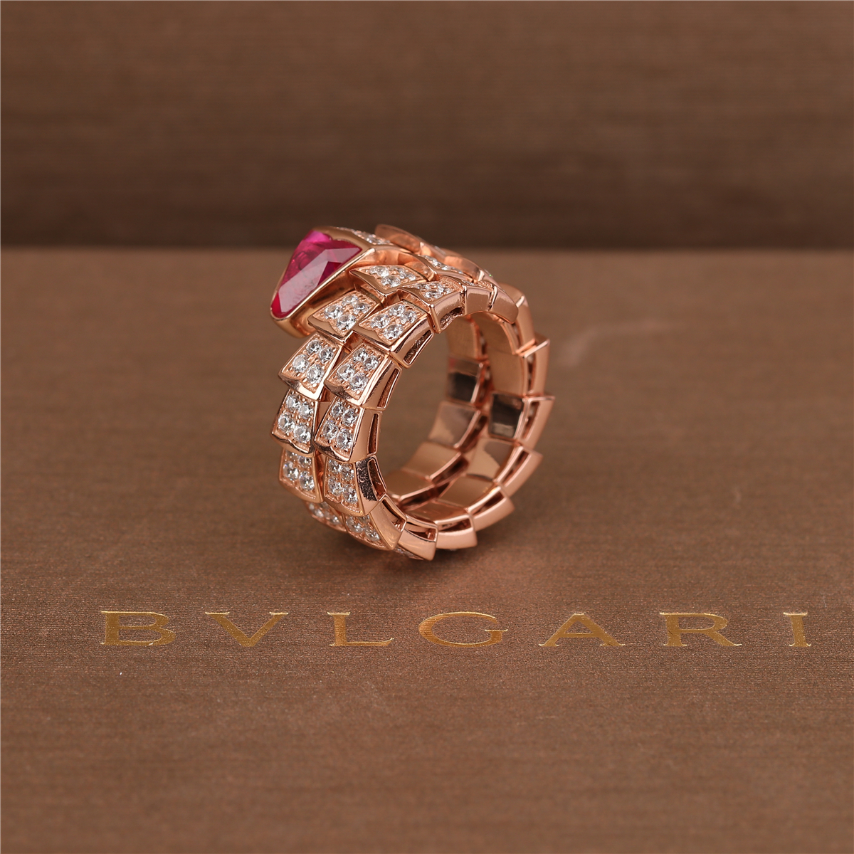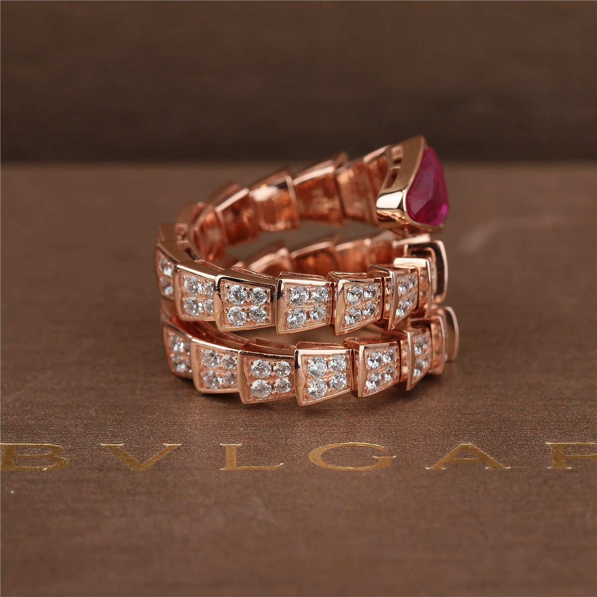 宝格丽红碧玺蛇头两圈半满钻蛇戒- 大牌18