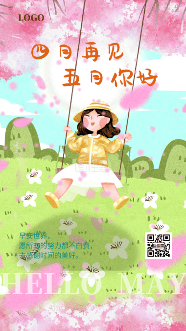 春分荡秋千的小女孩