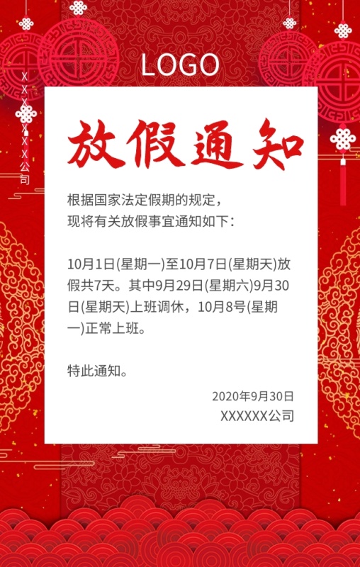 宝鸡恒通电子有限公司2018年国庆放假通知