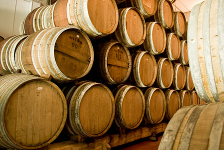 工厂里储存干邑、白兰地和葡萄酒的大型旧桶