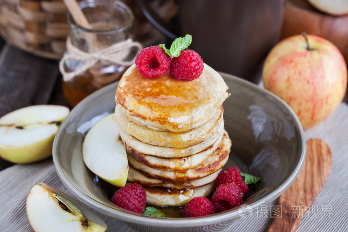 苹果煎饼加蜂蜜一起吃早餐