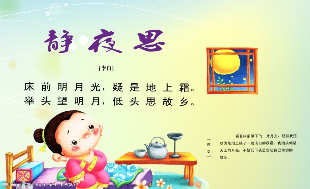 小学一年级语文上册《静夜思》图片素材_新东方网