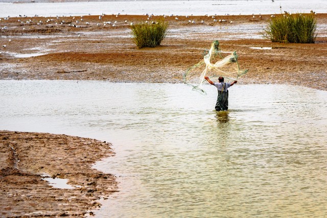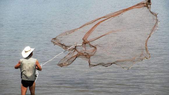 哈尔滨:松花江禁渔期 多人旋网捕鱼