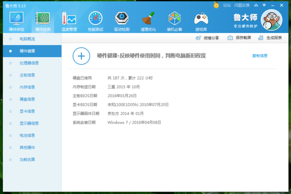 怎么用鲁大师检查笔记本电脑电池损耗程度?