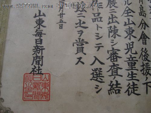 山东每日新闻社【奖赏】-价格:4600元-se13476521-奖状\/荣誉证书-零售-中国收藏热线