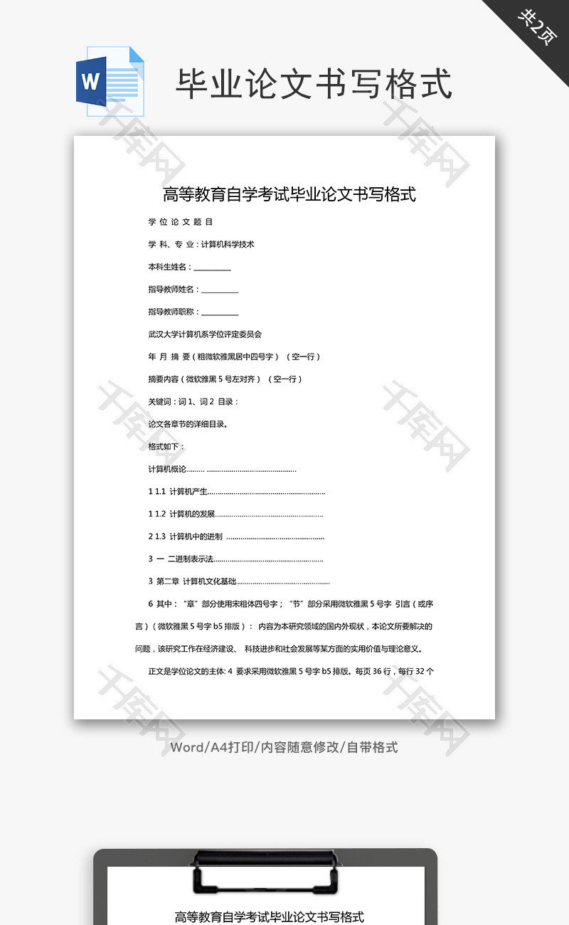 高等教育自学考试毕业论文书写格式word