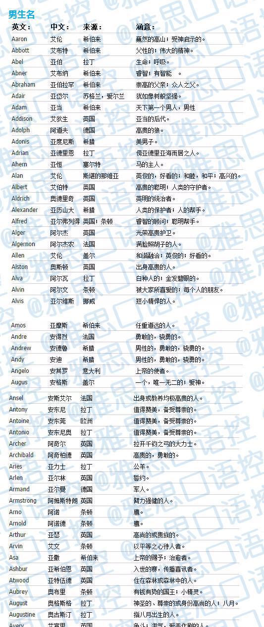 2018男宝宝英文名大全, 附加含义解释