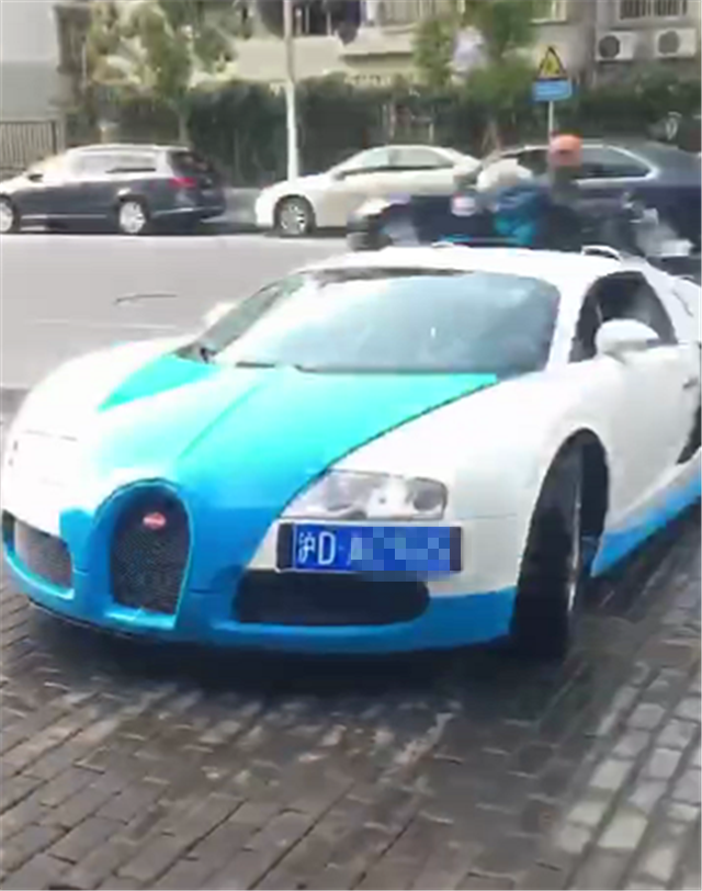 天空蓝双拼布加迪,车价千万,挂沪D牌,