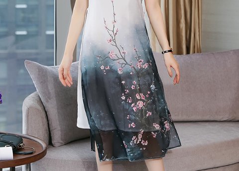 兰佩 新款印花旗袍式真丝连衣裙 - 聚美优品 - 名品特卖,正品折扣限时抢购