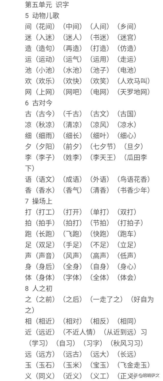 1-5单元生字组词大全,提高为孩子收藏打印
