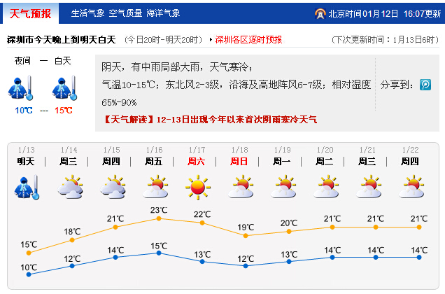 11度还下雨 深圳发布寒冷黄色预警 14日