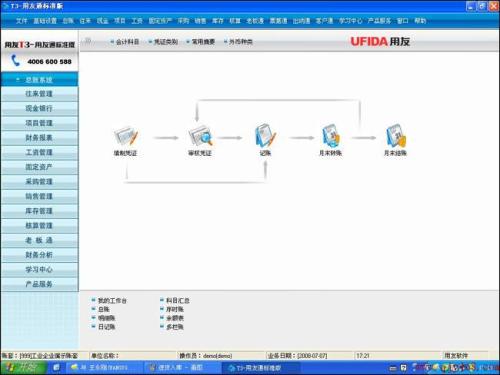 简介:用友财务软件,由用友软件股份有限公司开发,包括总账、应收款管理、应付款管理、UFO报表、网上银行、票据
