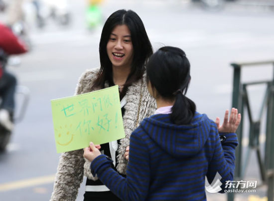 世界问候日记者和陌生人打招呼 回应你好