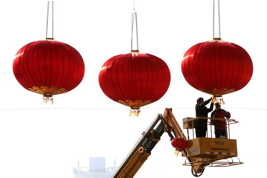 大红灯笼高高挂 中国各地迎接春节(组图)