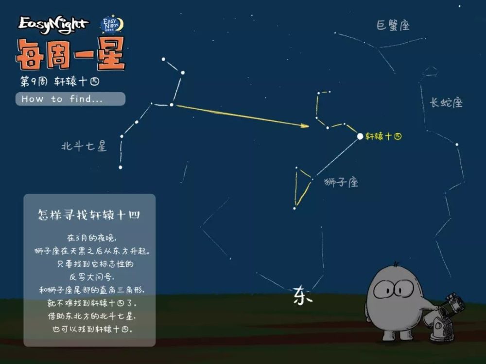 鹿林彗星绿色走向明亮的星轩辕十四底部